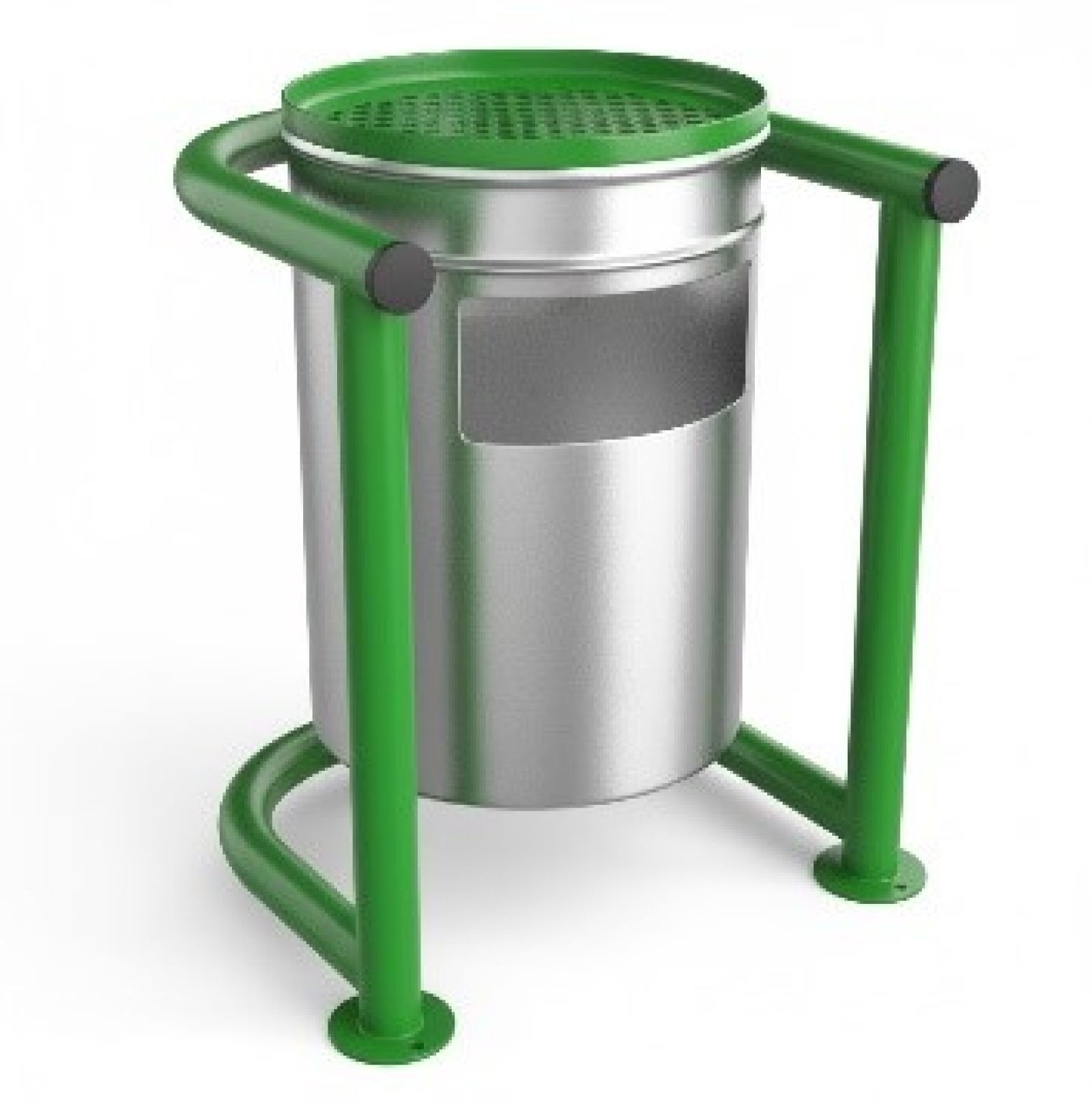 • Metalik gri gövde ile yeşil bileşimin birleşimi, park ve şehir alanları için modern ve estetik bir görünüm sunar.
